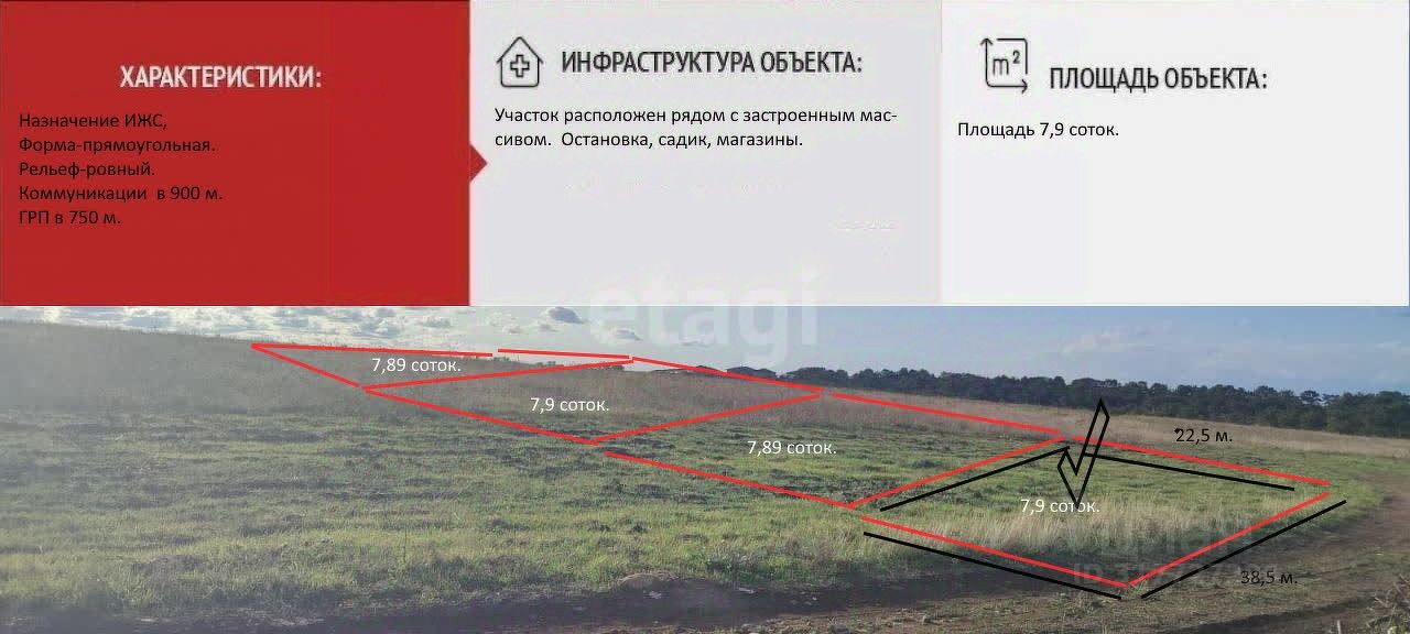 Особенности участка: Участок хорошей формы. Участки продаются одним лотом для строительства коттеджного поселка.