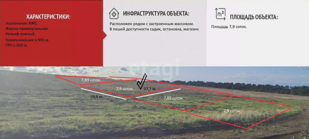 Особенности участка: Участок хорошей формы. Участки продаются одним лотом для строительства коттеджного поселка.
