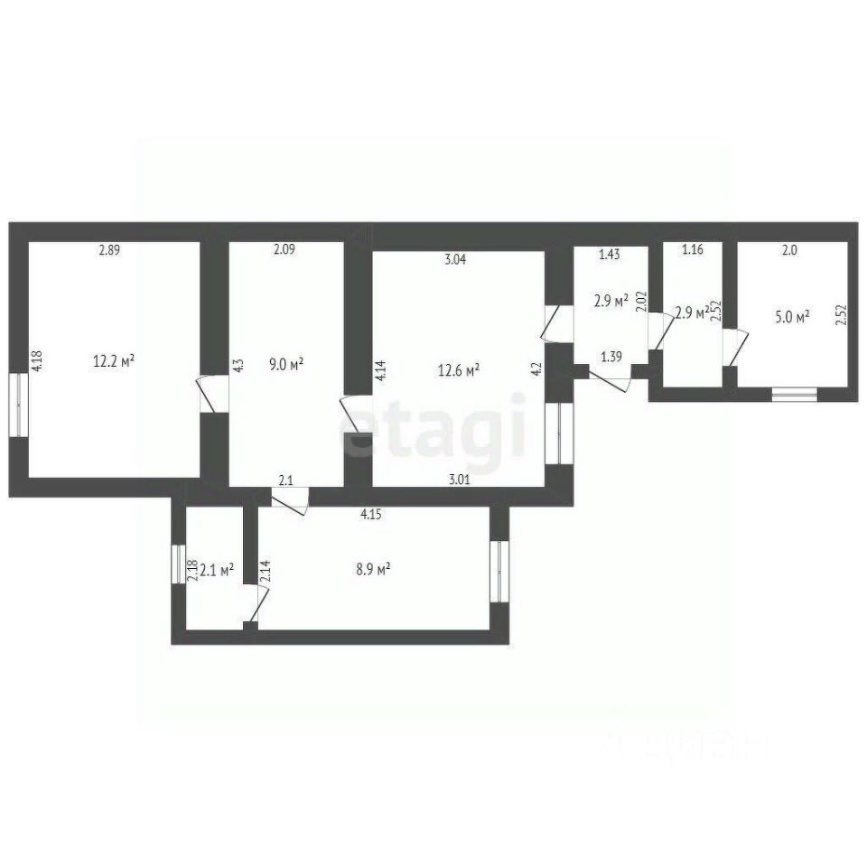 Дом состоит из коридора, веранды, двух комнат.