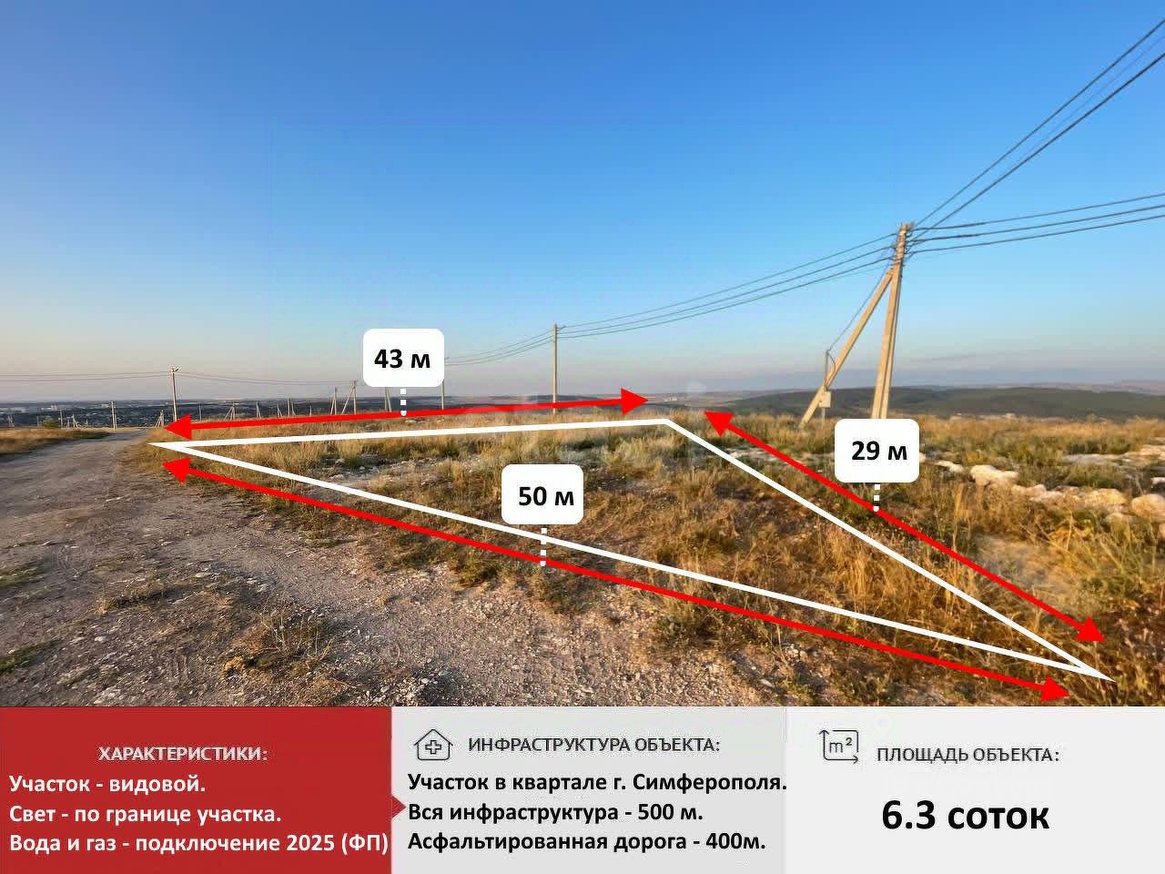 Участок, 6,3 сот.,ИЖС, с великолепным видом на Петровских высотах? в г. Симферополе!