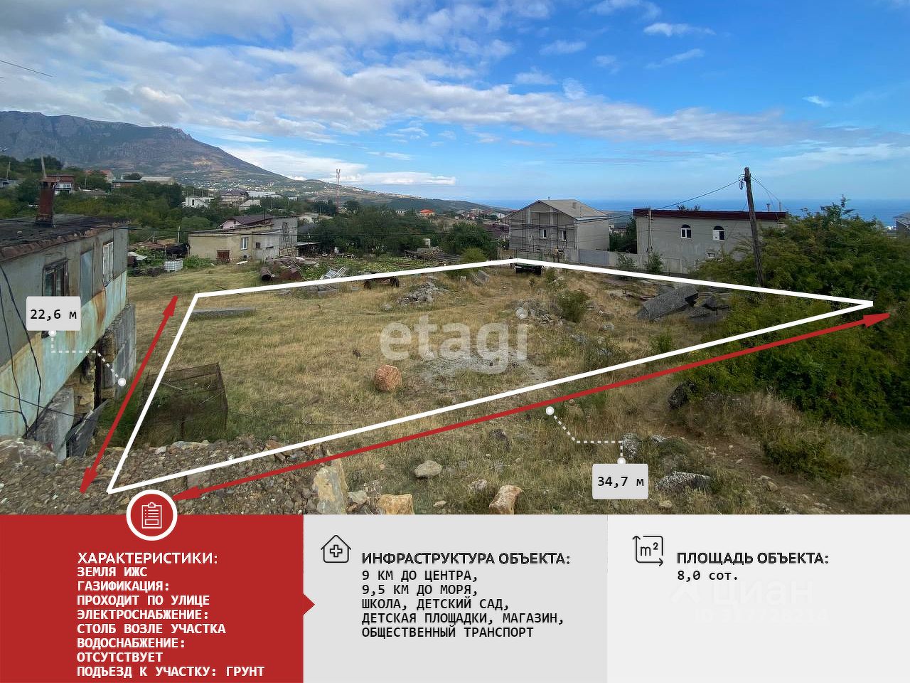 Участок расположен в ближайшей доступности к городу Алушта, максимально спокойное и благоприятное местоположение для строительства жилого дома.