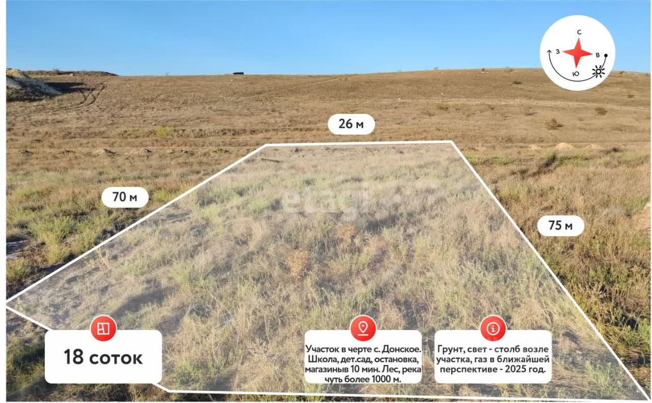 Продается земельный участок, в экологически чистом районе пригорода Симферополя,близ села Донское.