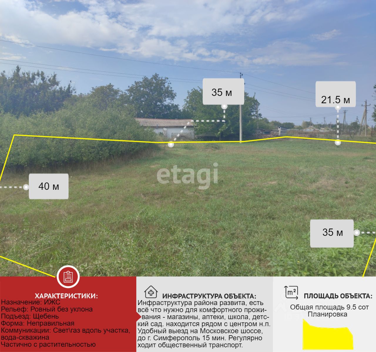 * Развивающаяся инфраструктура: школа, детский сад, асфальтированные улицы, все коммуникации (свет, газ, вода) уже подведены.