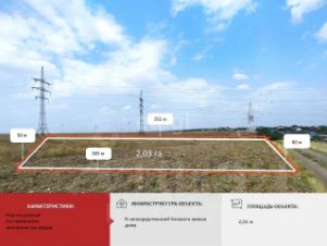 Участок ровный, общей площадью 2.03 га, с\х назначения , подходит для коммерции.