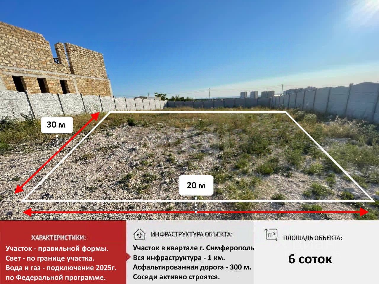 Участок 6 соток - ваш путь к благополучию и комфорту!г. Симферополь, в районе "Петровские высоты".