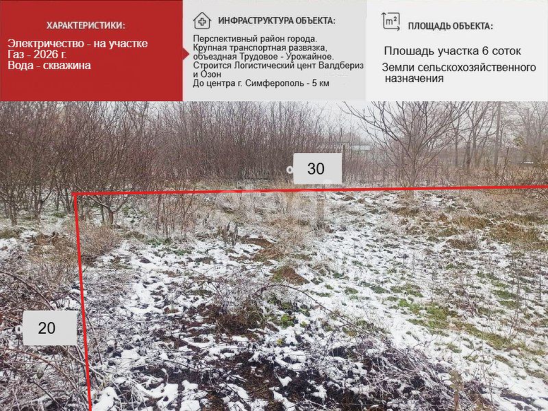 Участок расположен в стремительно развивающейся зоне, которая привлекает внимание благодаря близости к крупной транспортной развязке, обеспечивающей удобный доступ в любые уголки Крыма.