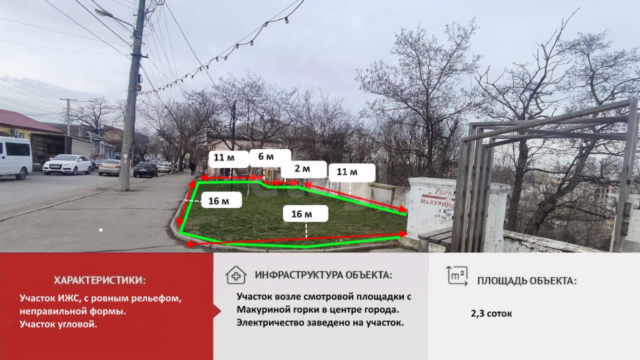 Участок площадью 2,3 сотки, расположен в центре города, на первой линии, рядом набережная и смотровая площадка, идеально подходит под коммерцию, строительство кафе, ресторана.