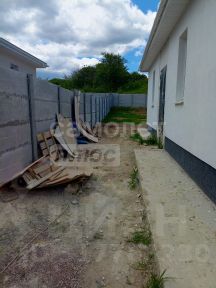 Участок правильной формы, огорожен бетонный еврозабор, автоматические ворота на пульте управления, тратуарная плитка, навес под авто.