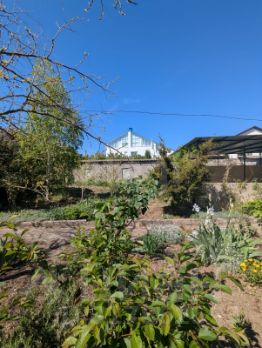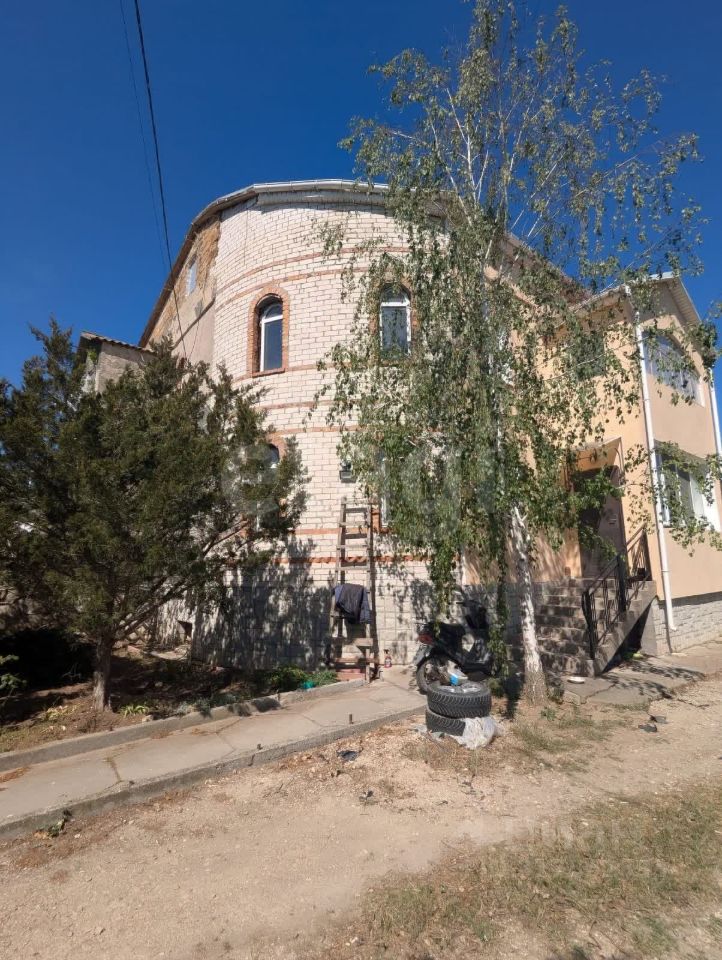 Дом трехэтажный. На первом этаже вместительная прихожая 18,4 квадратных метра, из которой можно попасть в большую столовую и кухню с выходом в прекрасный сад. Железобетонный фундамент, стены из альминского камня, кирпича и ракушечника, перекрытие железобетонные блоки. С другой стороны проход в огромный двухэтажный холл, высотой 5,5 метров, из которого можно попасть в комнату с видовым балконом, площадью 23,8 квадратных метра. На первом этаже расположен санузел и ванная комната с душевой кабиной. Поднявшись по лестнице холла, вы попадете на второй этаж, где расположены три широкие светлые комнаты площадью 24,7, 20,2 и 19,2 квадратных метра, из окна комнат открывается живописный вид на город. Также на втором этаже имеется совмещенный санузел с душевой кабиной. Цоколь содержит четыре комнаты и гараж, которые, частично, не оборудованы. По проекту, возможно, сделать бассейн с сауной. Во дворе располагается двухэтажный гостевой домик - на первом этаже комната, кухня и раздельные душевые с санузлом. Второй этаж не оборудован. Есть отдельная летняя кухня с выходом на беседку. Во дворе расположена крытая беседка площадью 35 квадратных метров. Во дворе сделан ландшафтный дизайн. Высажены хвойные растения, красивые ухоженные цветники и плодовый сад. Отопление индивидуальное, вода-скважина.