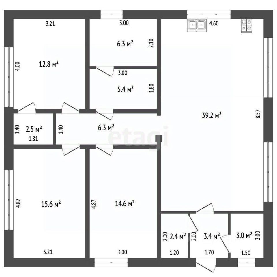 Одноэтажный дом площадью 125,4 кв.м., расположен на участке площадью 6 соток прямоугольной формы. Дом предлагается с предчистовой отделкой.