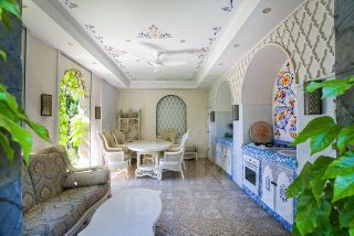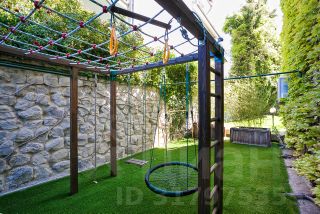 У виллы прекрасная озеленённых территория с теневыми местами для отдыха, летней кухней, беседками, детской площадкой, большим плавательным бассейном с зоной загара, фруктовый сад и розарий с автоматическим поливом.