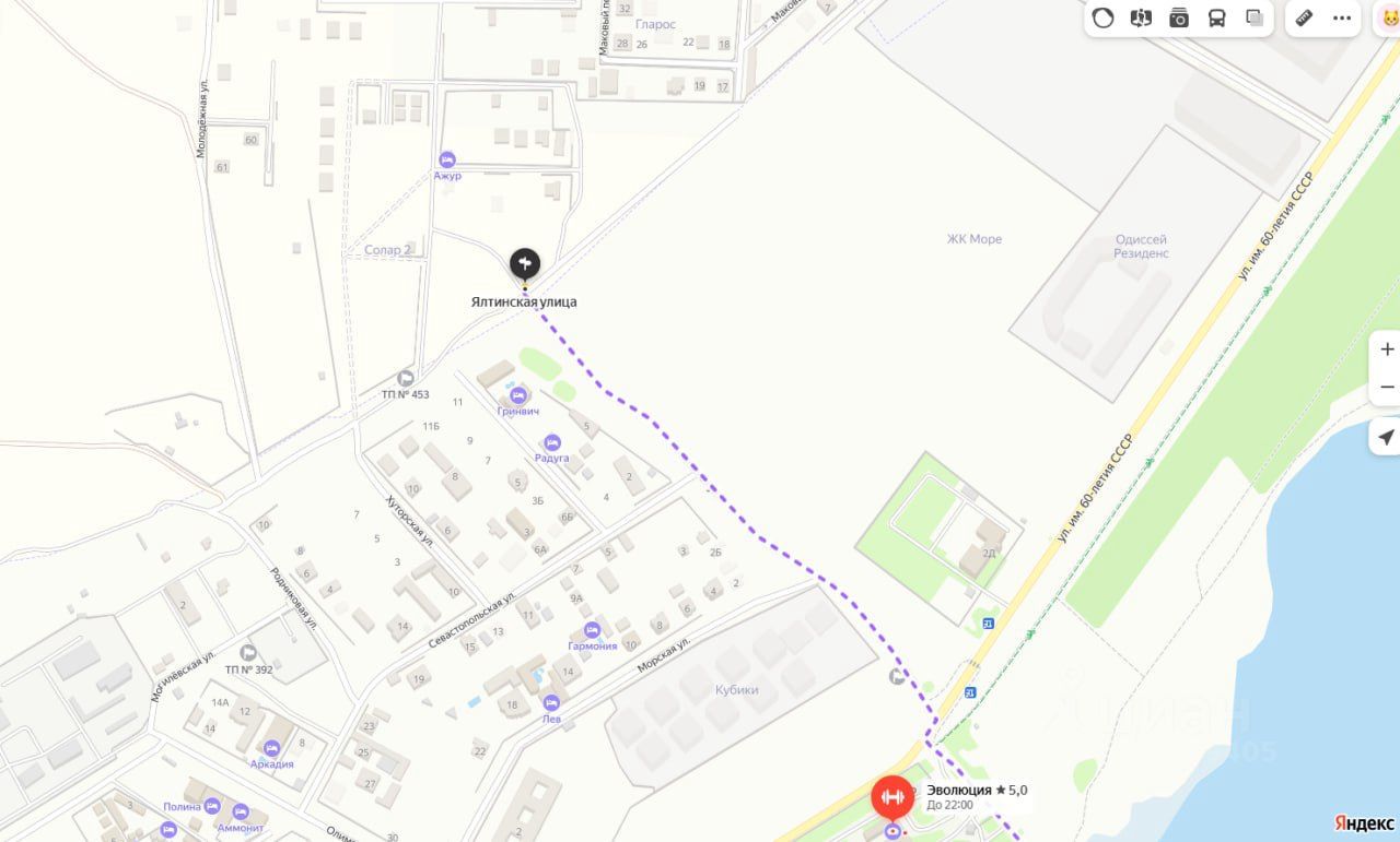 Большой ровный участок трапецевидной формы для постройки жилого дома. Подъезд по гравийной дороге. До остановки 10 мин пешком. До моря 15 мин пешком. Участок без насаждений, только полевая трава. Перевод на ИЖС после согласования ген. плана (ожидается концу 2025). Возможно подвести газ (центральная газовая труба недалеко от участка). Эл-во подведено, счетчик установлен, можно пользоваться. Центральной канализации не предвидеться. Доступ на участок свободный, заборов нет.