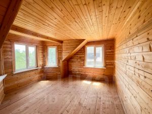 На первом этаже прихожая, гостинная, кухня, спальня, санузел. На втором этаже три спальни, гардеробная, санузел.