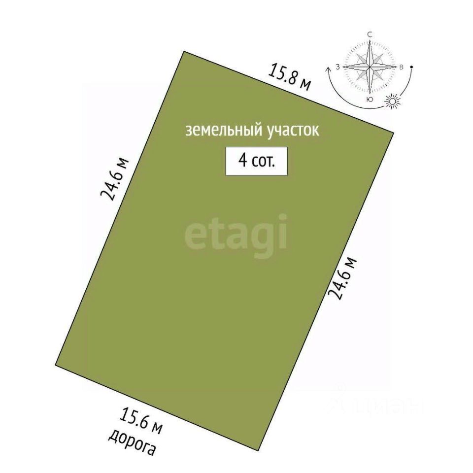 Продается участок площадью 4 сотки. На участке есть строение 40 кв. м., посажены деревья.