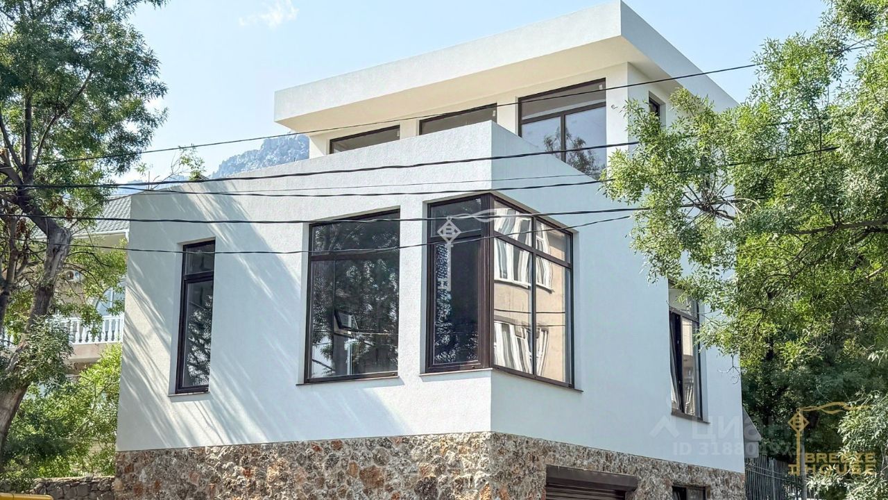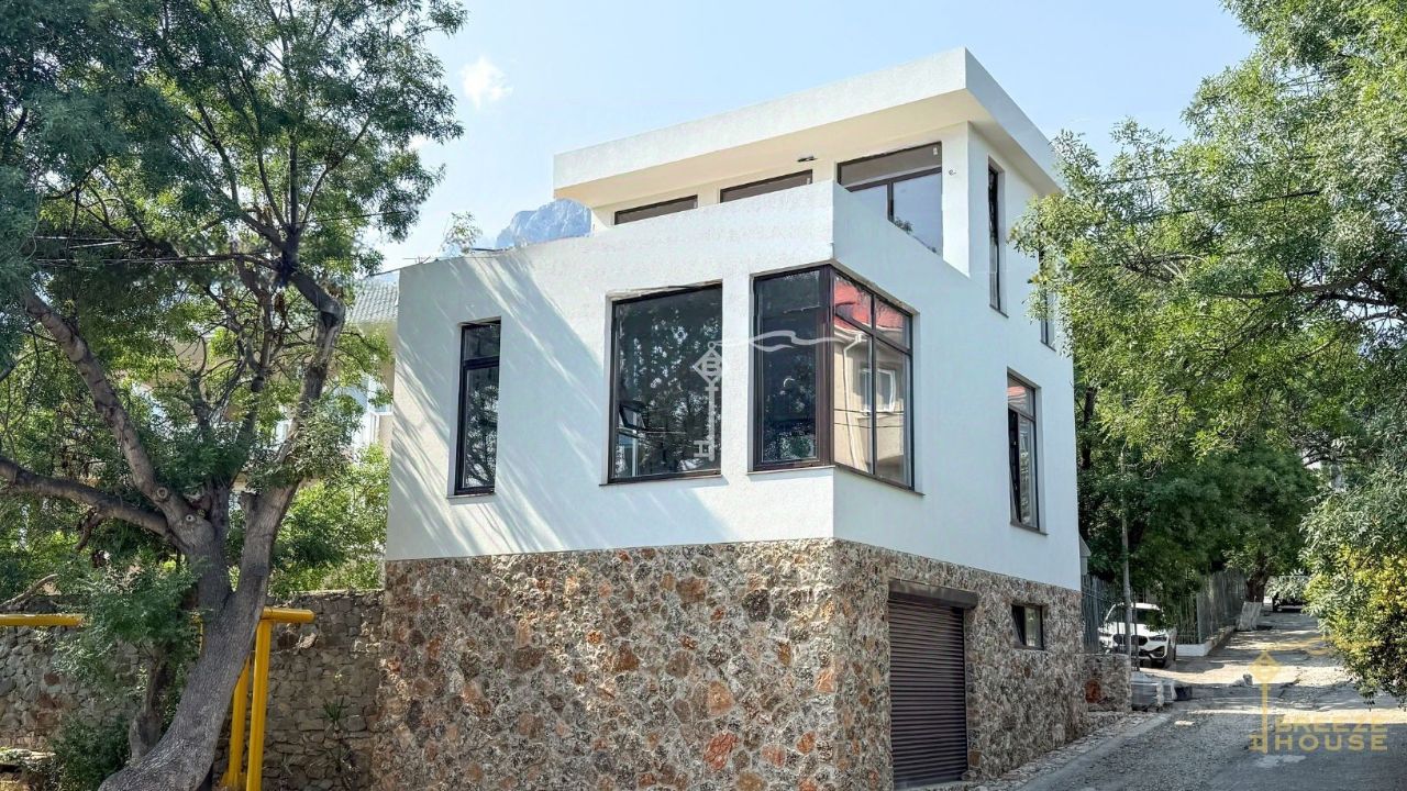 Продаётся двухэтажный дом под отделку площадью 150 м² на участке 0,63 сотки с гаражом и панорамной террасой в Кореизе, вблизи Ялты.