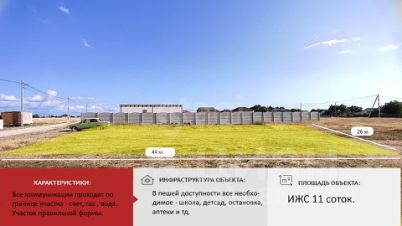 Вдоль участка проходит газ, электричество и центральное водоснабжение. Участок удачно расположен в селе.