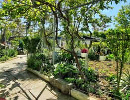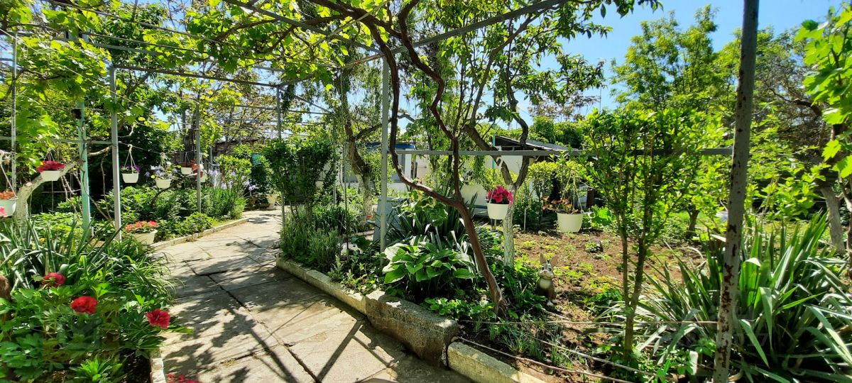 Дом с участком 7 соток расположен в самом центре курортной зоны г. Евпатория. Район очень зелёный, тихий, вокруг небольшие семейные гостиницы и частный сектор. До набережной можно дойти за 5-7 минут прогулочным шагом. Магазины, школа, детский сад, поликлиника находятся в шаговой доступности.