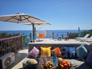 Этот комфортный двухэтажный дом на территории частной собственности расположен всего в 100 метрах от моря и предлагает вам великолепный вид на водную гладь!