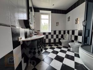 На первом этаже огромная кухня ,гостинная,зал ,и комната ,также на каждом этаже имеется свой санузел,прачечная,2 кладовки,бассейн,парилка,под домом хороший ,сухой гараж в который можно выйти прям из дома.