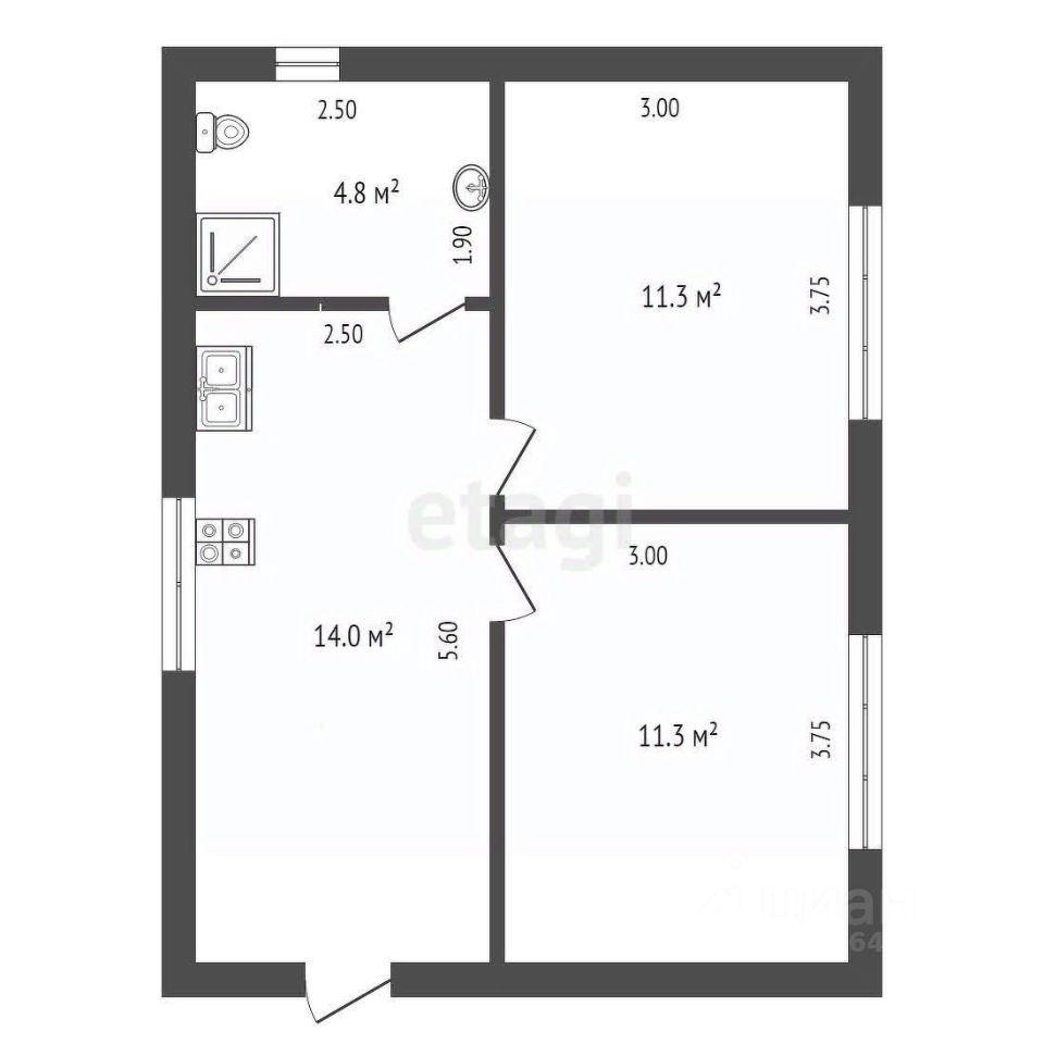 Комфортная планировка: В доме две отдельные комнаты по 11,3 кв.м., просторная кухня 14 кв.м. и санузел 4,8 кв.м., что обеспечивает удобство и комфорт проживания.