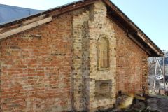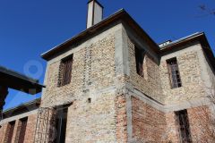 Дворовые строения выполнены из красного кирпича с железобетонными элементами, обеспечивающими сейсмостойкость. В цокольном этаже расположены помещения жизнеобеспечения: кухня, прачечная, кладовые, комната для персонала, гараж, мастерская и котельная. Внутренние стены оштукатурены, установлена дубовая столярка, смонтированы окна со стальными декоративными решетками и входные стальные двери. Автономное водяное отопление временно законсервировано, но полностью готово к эксплуатации. Крыша собрана на стальных фермах с деревянной обрешеткой и покрыта оцинкованным железом.