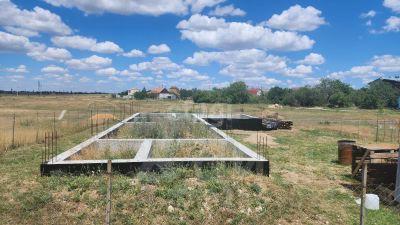 На участке уже залит фундамент по проекту дома, установлено ограждение.