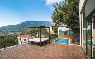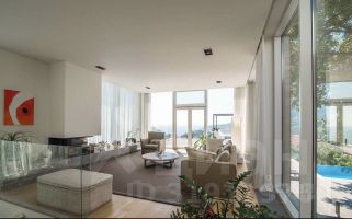 Двухэтажная вилла общей площадью 700 кв.м., вилла в современном архитектурном стиле, большие панорамные окна с раздвижными системами патио, плавательный бассейн с переливом, панорамные виды на море.