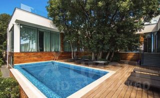Гараж для авто, детская площадка, бассейн с переливом и зоной загара, помещение для персонала, пруд с карпами, беседка с барбекю. Фруктовый сад с автополивом, современные системы видео наблюдения.
