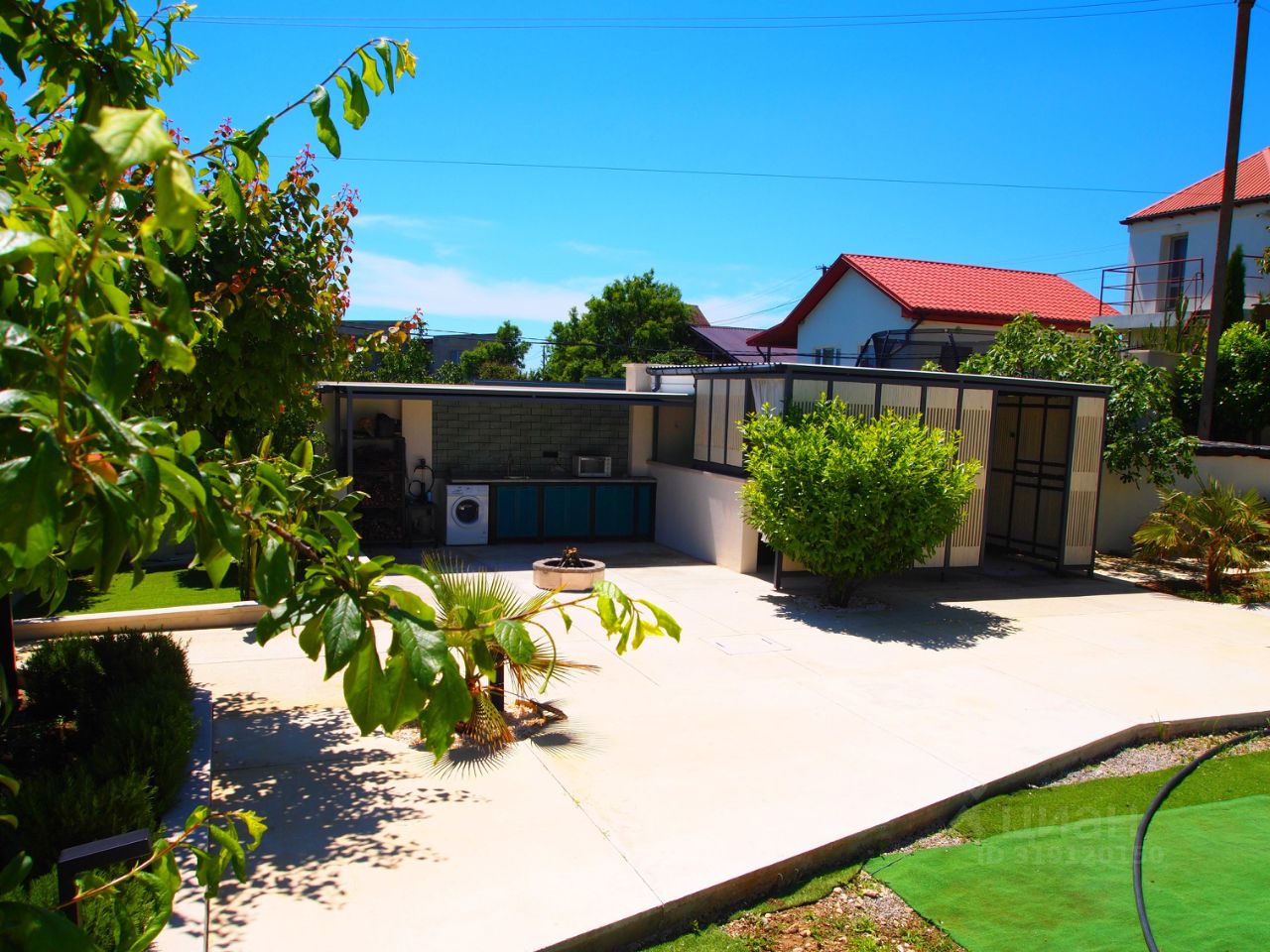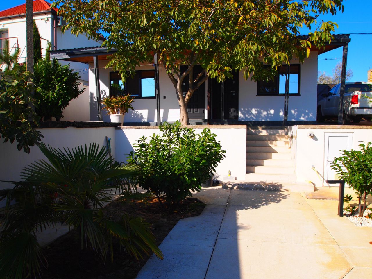 Внутренняя территория очень ухожена и красива. На участке растет гранат, абрикосы, чернослив, инжир, грецкий орех, банан. Деревья и кустарники и пальмы уже взрослые и не нужно ждать 10 лет пока они вырастут. Заходи и живи - прямо здесь и сейчас!