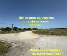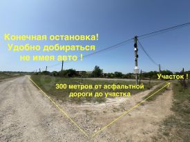 Оч рядом с асфальтированной дорогой и конечной остановкой этого массива , 300 метров от участка до конечной . ( удобно добираться , не имея личного авто ).