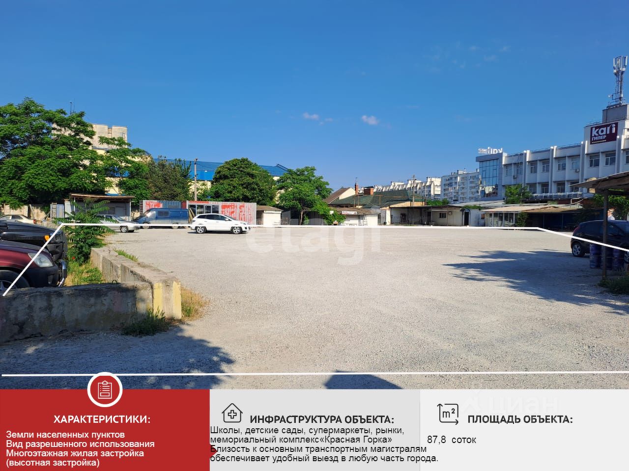 Участок подходит как для коммерческой застройки, так и для реализации крупного инвестиционного проекта. Благодаря центральному расположению и развитой инфраструктуре объект обладает высокой ликвидностью и перспективой роста стоимости. Для получения дополнительной информации и осмотра участка свяжитесь с продавцом.