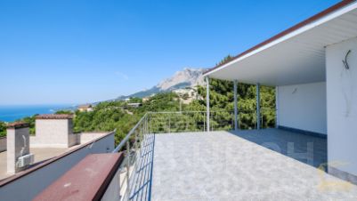 Над баней расположена эксплуатируемая кровля с летней кухней, теневым навесом, зонами отдыха и парящей кроватью. С террасы бани открывается живописный панорамный вид на море и горы.