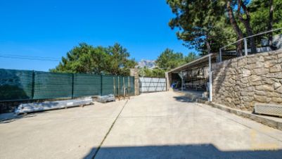 Участок 10 соток с качественным благоустройством: подпорные стены из тесаного бута, капитальный забор, въездная группа, ландшафтные зоны с крымскими соснами, зона парковки.