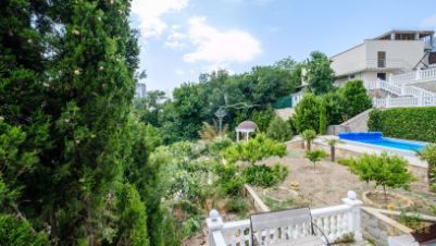 Роскошная трехэтажная вилла с гостевым домиком, бассейном и плодовым садом, расположенная на просторном участке 20 соток в Кореизе.