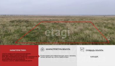 Цена ниже рынка! Срочно продается участок ИЖС 8,96 сот в с.Медведево Черноморского р-на.