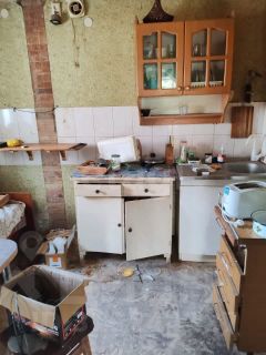 Дом с небольшой терассой, 2 комнаты, кухня и санузел.Под домом большой подвал. Есть хозяйственные постройки.