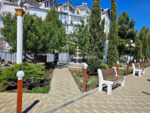 - Больше 35 деревьев (кипарисы, ели, сосны) — профессиональный садовник следит за озеленением
