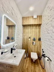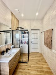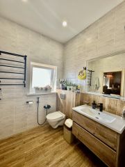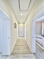 4 спальни, кухню-гостиную, 2 санузла, сауна, гардеробную , прихожу, коридор и тех. помещение. Большая веранда с панорамным остеклением, выход из кухни-гостиной.