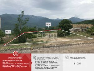 Участок расположен в верхней части села Изобильное Вся инфраструктура рядом. Участок ровный.