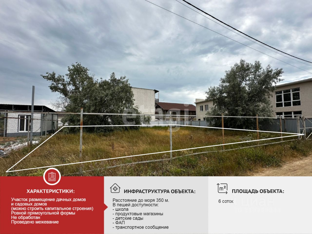 Развитая инфраструктура всё в шаговой доступности: школа, садик, ФАП, множество магазинов, рынок, остановки общественного транспорта, хорошая транспортная развязка во все направления. Возле посёлка ведётся строительство автомобильной магистрали федерального значения "Керкинитида" Симферополь - Мирный. До линии моря 350 метров (пляж с белым песком и прозрачной водой).