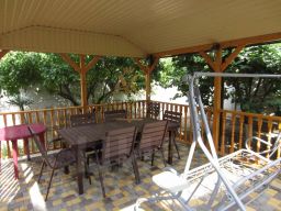 Во дворе имеется круглогодичная беседка с качественной садовой мебелью, окруженная деревьями, что создает прохладу и уют. На территории участка расположены летняя кухня 18 кв.м., с санузлом, беседка 15 кв.м., двухярусный навес над парковочным местом и входом в дом.Имеются фруктовые деревья, миниатюрный ботанический сад, места отдыха и досуга.