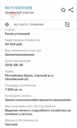 Кадастровый номер участка 90:11:130701:*** указал продавец