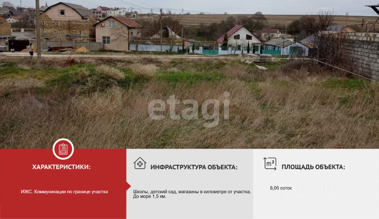 Продам видовой участок в курортном поселке Черноморское площадью 8,06 соток. Вид разрешенного использования индивидуальное жилищное строительство.
