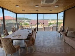 абсолютно новый 2-этажный дом в самом экологически чистом районе г. Симферополь, обставленный новой мебелью, а также электроникой и бытовой техникой.Количество комнат: 5 Дом находится в одном из самых живописных и тихих уголков - с. Строгановка, ул. Ай-Петри.Дом расположен на скале имеет большие панорамные окнами, из которых отрывается вид на долину и сосновый лес. Имеет три террасы с натуральным зелёным газоном + автоматическая система полива под всем газоном. Вся территория огорожена капитальным забором. Оборудована освещением со всех сторон, с несколькими прожекторами. По периметру территории и дома установлено 20 камер видеонаблюдения + система фиксации и записи, все подключено к умному дому.Двор с автоматическими воротами, вымощен тротуарной плиткой.Дом состоит из трех этажей: Цокольный этаж: Отапливаемый, тех помещение для стирки и глажки, большая гардеробная комната, зона хоз. хранения, подвал 30 кв м., насосная с емкостью 1,5 м куб. и системой фильтрации. Имеется выход в гараж. 1-й этаж: уютная гостиная с натуральным камином, санузел с душевой, прихожая, кухня-столовая с выходом на террасу и на летнюю площадку, топочная с кладовкой и бойлером на 300 л воды, гостевая спальня. 2-й этаж: 3 спальни, большой санузел ванной и душем, кладовка. К дому примыкает гараж на 4 машины с зоной хранения инструментов и колёс. В гараж выведена горячая вода и сделан слив. Дом уникален по своему комфорту, построен по эксклюзивному архитектурному проекту. Просторные светлые комнаты с удобной планировкой, индивидуальным дизайном, в светлом цветовом решении. Итальянская кухня с техникой ведущих мировых производителей. Камин облицован белым мрамором. Первый и второй этаж соединяет дубовая лестница. Высота потолков от 3,5м. до 7 м. Гостиную украшает эксклюзивная 3-х метровая люстра выполненная на заказ. Экономное отопление. Теплый пол на всем первом этаже.Материалы отделки плитка керамогранит Италия, сантехника Италия, экологически и гипоалергенная краска. Дом построен из натурального камня ракушняк, утеплён по финской технологии 10 см, покрыт немецкой фасадной штукатуркой и вокрашенБойлексом (гарантия 45 лет). Заведены: свет 3 фазы, собственная вода ( скважина глубиной 42 м), Газ по забору. План газификации уже утверждён. В доме вся разводка отопления выполнена с учётом подключения газового котла. Во дворе септик на 30 м куб. Интернет.