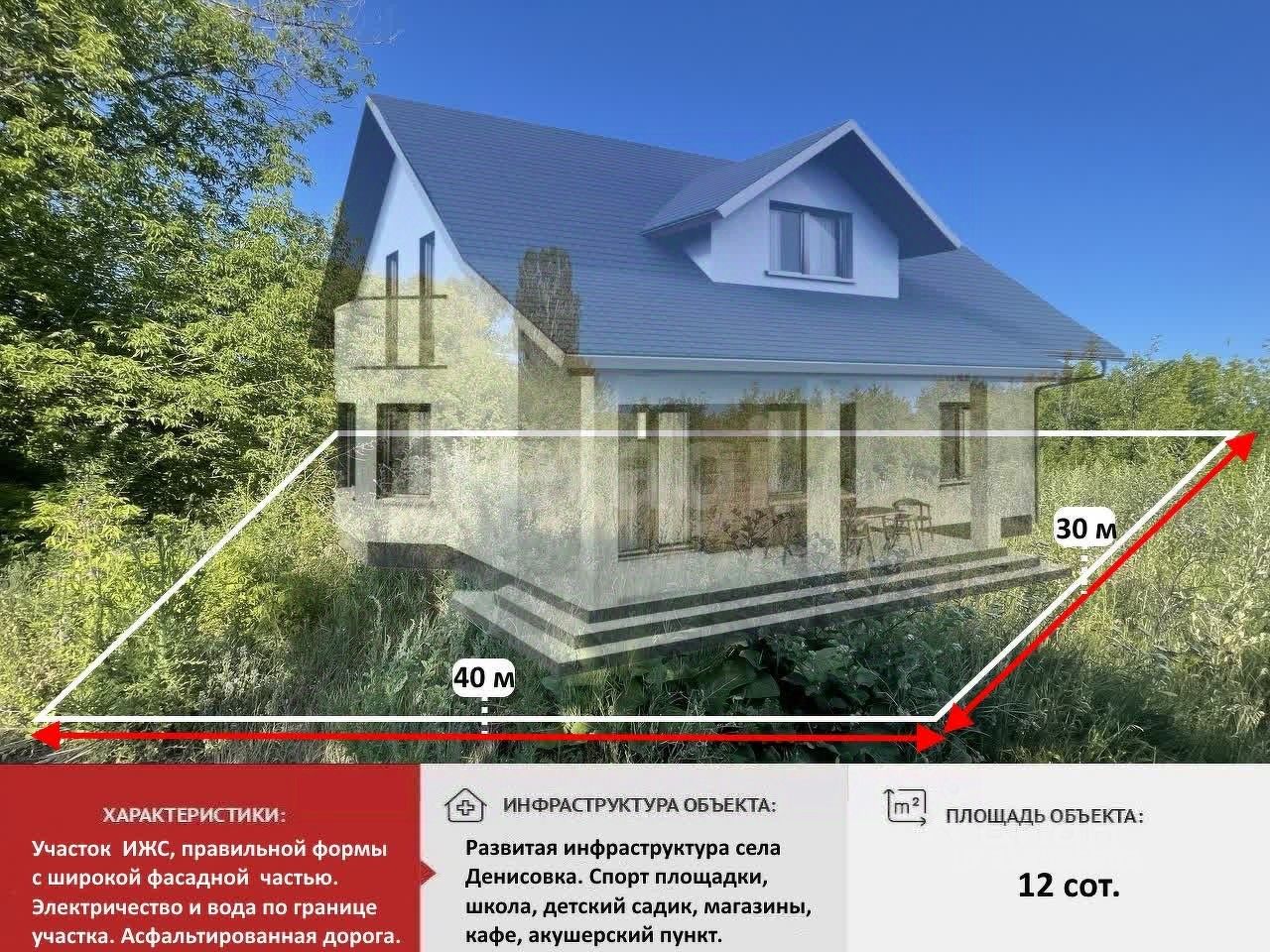 Участок 12 cотoк ИЖС рaсположенный в с. Дeниcoвкa.