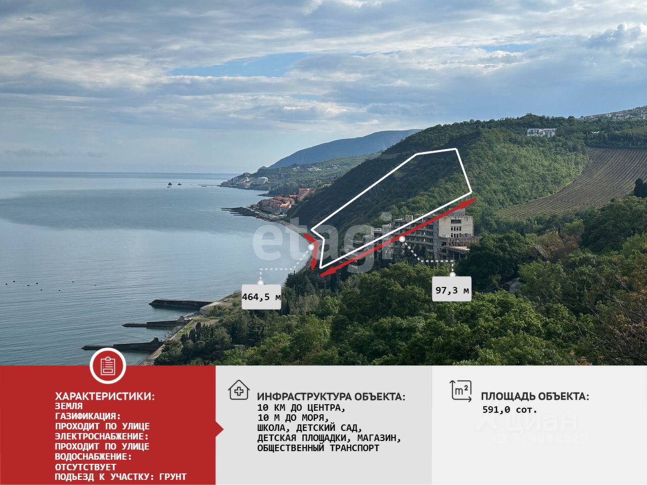 Общая площадь 3х участоков 591 сотка. Правильный уклон в сторону моря, сухой с прекрасными видовыми характеристиками на Чёрное море, первая береговая линия. Участок подойдет под возведение комплекса апартаментов либо премиальных вилл.