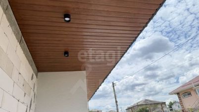 Дом утеплен, нанесена фактурная штукатурка короед, окрашен. Смонтирована водосточная система. По периметру дома широкие отмостки. Во дворе залита стяжка в зоне террасы и крыльца.