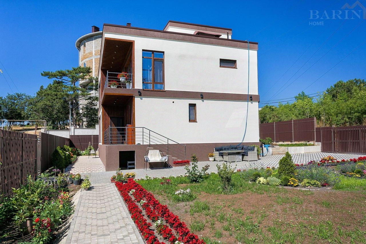 Продажа современного трёхэтажного дома. Современная архитектура, панорамное остекление, архитектурная подсветка и огромная эксплуатируемая терраса на крыше, которую можно сделать зимним садом в панорамным видом на море. Дом находится в 950 метрах от моря. Площадь 8 соток. Дом расположен в 200 метрах от бывшего домовладения Софии Ротару.