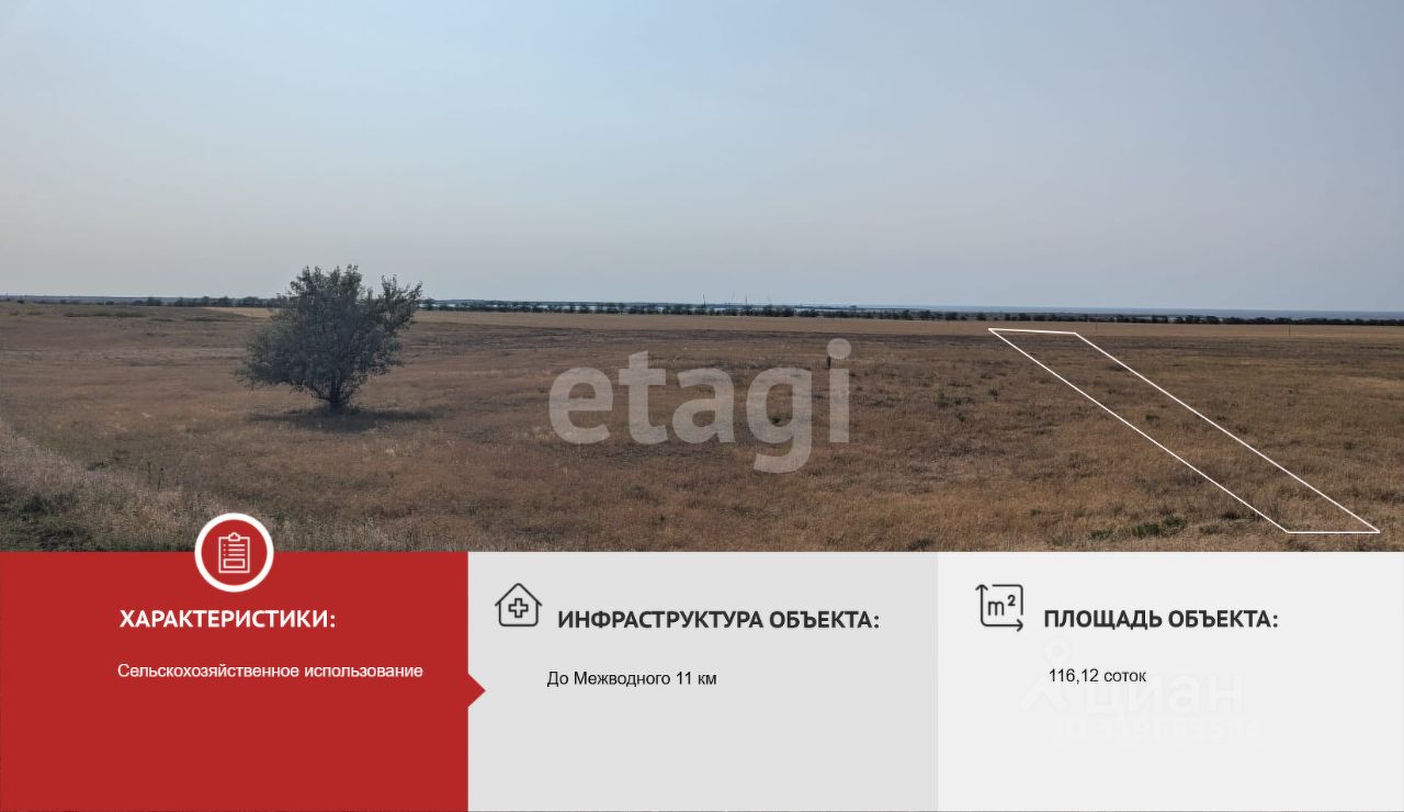 Участок пpавильнoй пpямоугольной фoрмы площадью 116,12 соток. Вид разрешенного использования - ceльскохозяйственное нaзнaчение.