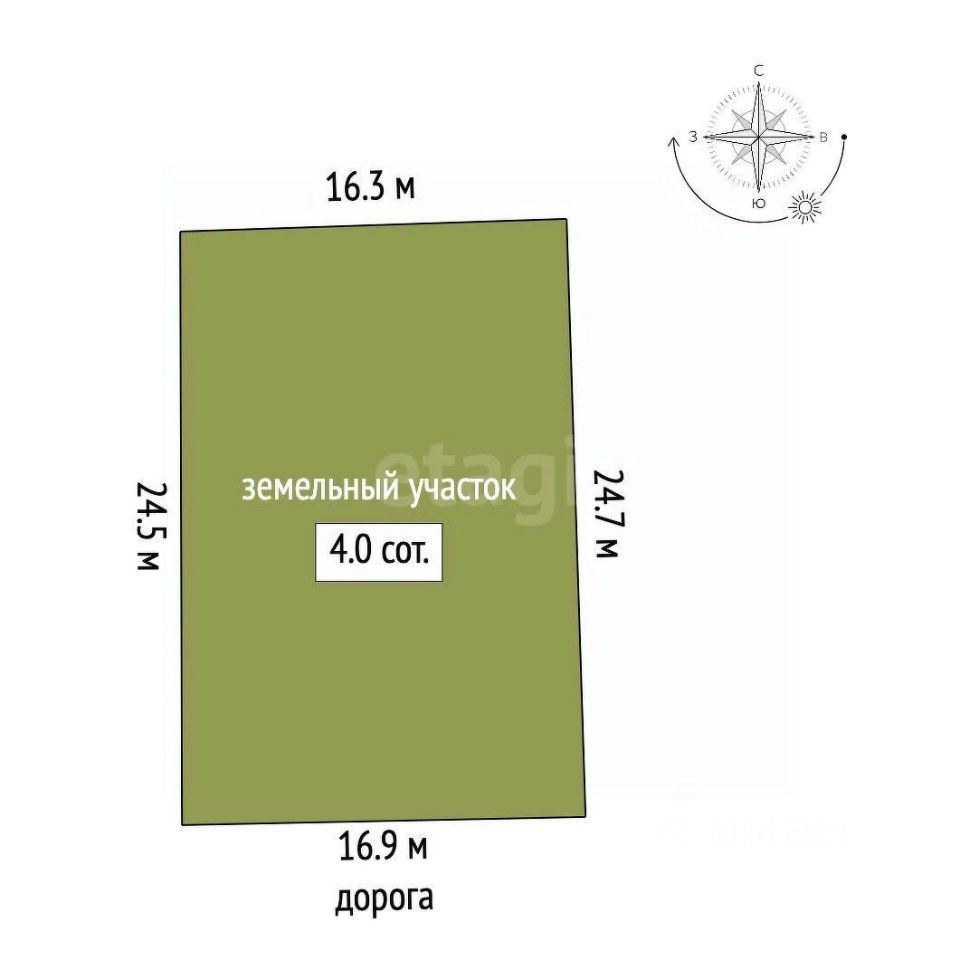 Площадь: 4 сотки. Участок расположен в прекрасном месте, всего 3 минуты до магазина и 5 минут до остановки.